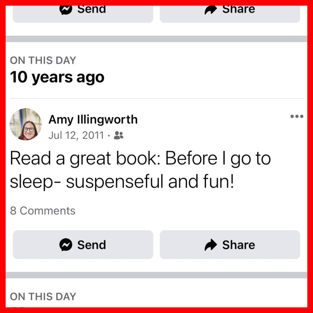 I have a funny reading story about my poor memory (and the reason I blog about what I read!). Earlier this month I was scrolling through my Facebook memories and the memory below, from 2011 pops up: