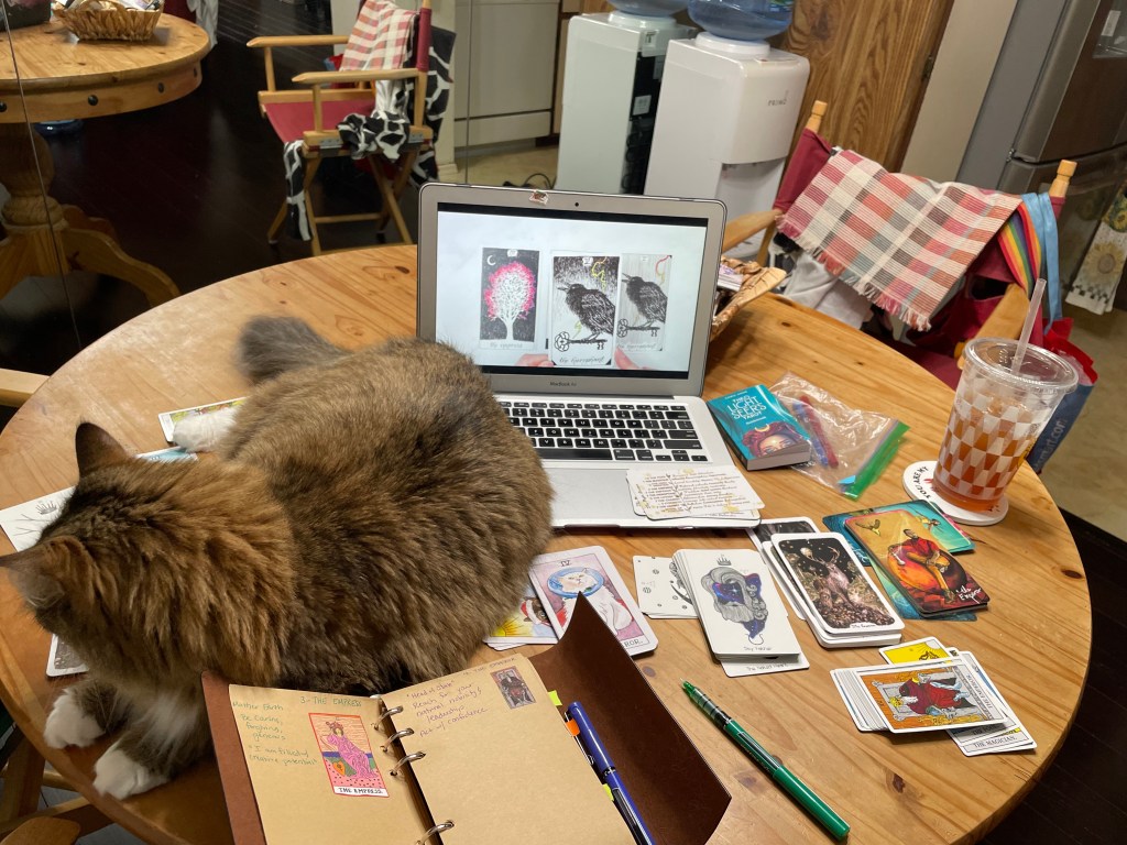 One of our next assignments was to create a journal specifically for this course, so we could capture our learning about each of the 78 cards in a tarot deck in one place. I like to journal, and had fun creating this. More importantly, before I hit play on every video, I had my journal out to the appropriate page, and my decks out in front of me, ready to take notes. At the time, I wasn’t sure if or when I might use those notes, but I have gone back to them many times. In addition, writing down my new thoughts and reflections helped solidify learning for me.