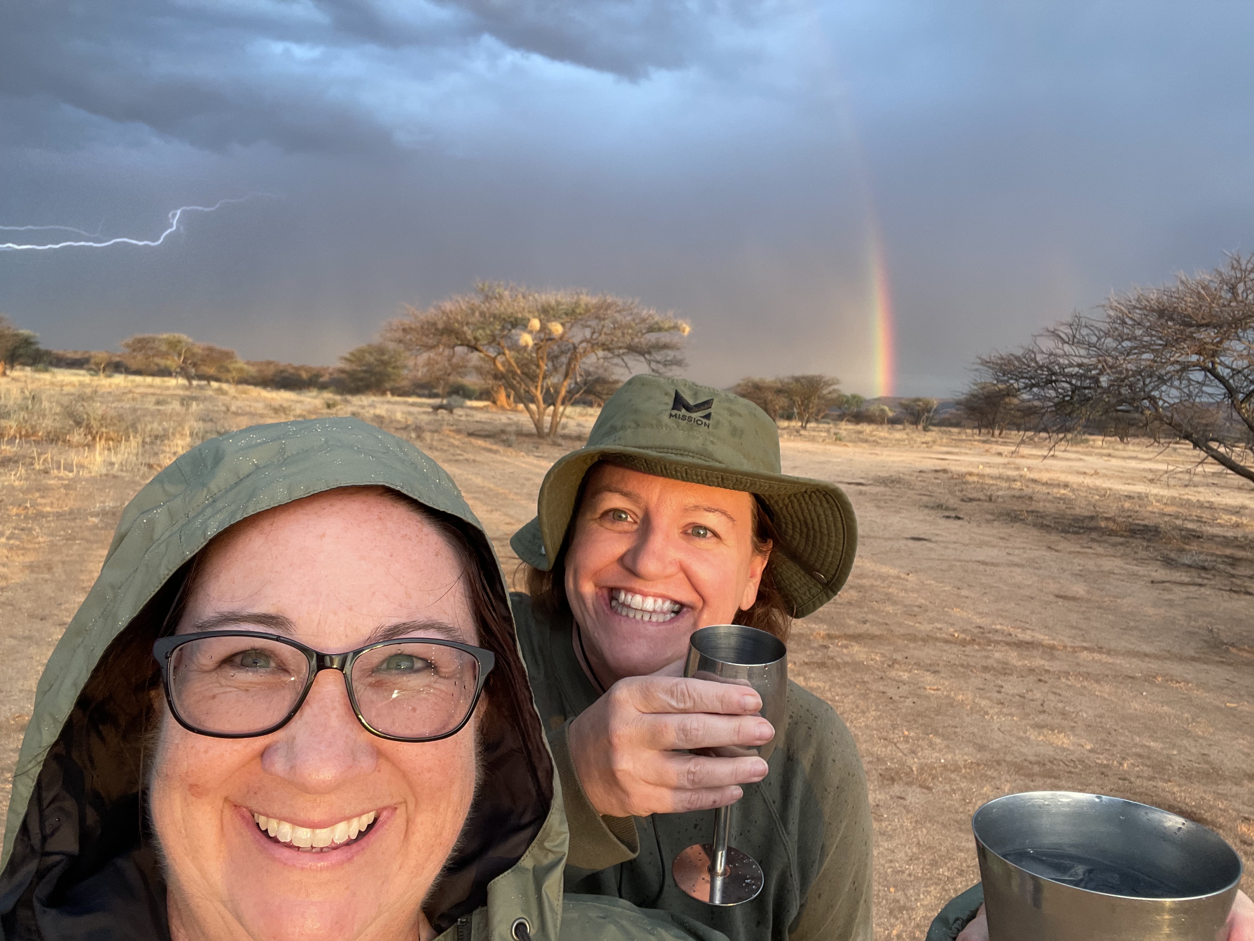 In addition, we enjoyed a hot air balloon ride over the Namib Desert, which was stunning! We also had the very personalized experience of a cooking class and dinner in someone’s private home, where the people there taught us about three of the local tribes by sharing their clothing, food, and some customs with us. We also bought bulk groceries to a private Himba Village, where through translators, we were able to speak to the local tribeswomen who generously showed us some of their traditions. These included how they crush up red red ochre and mix it with an oil to spread over their hair and body 2-3 times a day for beauty, skincare and sun protection. These are a group of people who do not bathe with water to clean themselves, but rather they heat up the camphor plant and create a steam in which to “bathe” themselves for a clean fragrance. The people we met were kind, caring, and happy, yet surprised that so many of our all women’s group were unmarried. One woman asked me, “Where are you from? Are there no men there?” 😉