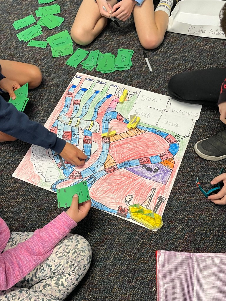 8:15-9:40 AM – I visit each of our nine sites regularly to meet with principals, visit classrooms, and discuss teaching and learning. I’ve set a goal each year to visit every single classroom in our district. I haven’t met this goal yet, but I am well on my way to meeting it this year! These visits fill my teacher heart and my instructional leader soul, as we get to witness fun student learning and powerful pedagogy, and then discuss coaching moves as leaders. In fact, we were so into our discussions today that I stayed too late and got behind on my schedule! Today we saw 4th graders finalizing the board games they designed around Spanish explorers, as part of their history work. I learned a lot about the explorers and they had some creative designs!