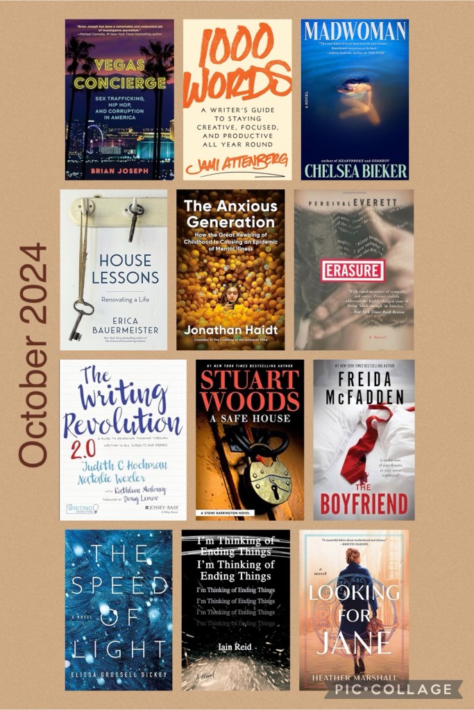 - Erasure by Percival Everett – My work friend gave me this book, after she saw the adaptation of it and loved it. This is a satire in which a Black author who writes highly elevated literary fiction decided to write a joke of a book using slang and a pseudonym. The book ends up becoming so popular the author has to decide whether to admit he is the author or remain in hiding, while also dealing with significant family situations in his personal life. This gives the reader pause on the publishing industry, the book award process, how authors of different identities are treated, and how books can help or hurt prejudices and biases. This was a beautifully-crated novel.